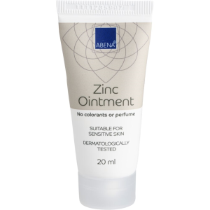 Abena Zinksalva oparfymerad - 20 ml med 20% zinkoxid skapar en vit avvisande barriär mot irriterande ämnen som urin och avföring. Zinksalvan är dermatologiskt testad och mycket skonsam mot känslig hud. Vatten-i-olja-emulsionen ger nödvändig fukt och skydd till huden som varar i 8 timmar. I kombination med sheasmör har den dessutom en lugnande effekt på huden. Salvan absorberas snabbt och överflödig salva kan enkelt torkas bort utan alltför mycket friktion. Rekommenderas speciellt för sängliggande och inkontinenta personer vars hud behöver skonsam vård.